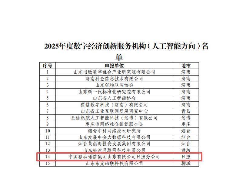 深耕 “东谈主工智能 + 产业大脑”:构筑产业升级 “智” 联新基座日照移动积极反映山东省数字经济发展策略,在市政府及市工信局的训诫下,当今茶“产业大脑”已完成举座建造,并参加运营阶段,并在首届中国数字经济和实体经济交融发展大会推出的三个“新质分娩力”产业大脑之一持重发布。2024年12月,茶产业大脑被省工信厅评为“山东省示范型产业大脑”。此外,日照移动主动揭榜海洋食物产业大脑、绿色建筑(智能建造)产业大脑,并纠合参与了日照市低空翱游产业大脑和蓝莓产业大脑的揭榜,成为省内首个参与5个产业大脑建造的企业,并到手入选2025年度山东省“数字经济改进工作机构(东谈主工智能标的)名单”。