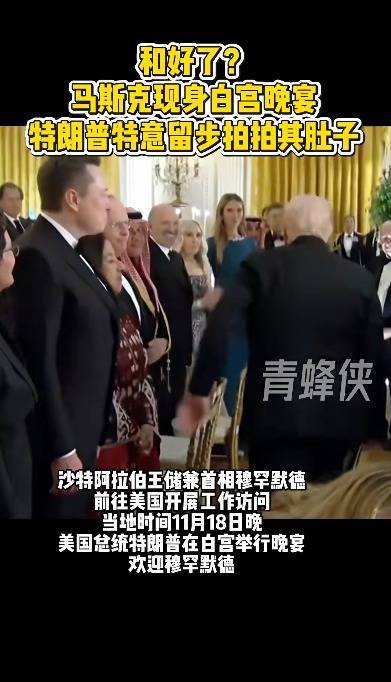 另据CCTV海外时讯11月19日音书,好意思国亿万财主埃隆·马斯克也在白宫进入了好意思国总统特朗普为沙特王储穆罕默德·本·萨勒曼举行的晚宴。
