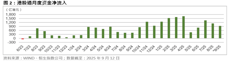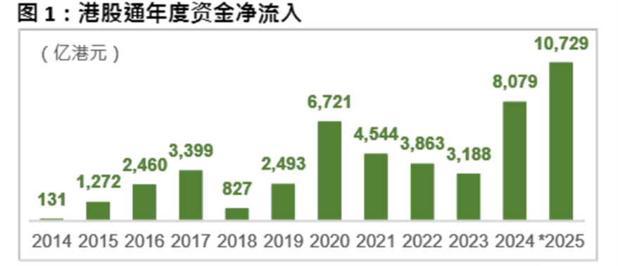 这一逻辑不仅被外洋资金招供,更是辅助中国买卖模式的南下资金还是在用脚投票。铁心2025年9月,港股通资金年内净流入已冲突1万亿港元,较2024年全年高33%;铁心本年6月底,公募基金在港股的投资市值已接近1万亿元东谈主民币。据香港交游所数据,2025年前8个月,港股通的日均成交额为608亿港元,占系数这个词市集成交额的24.5%。