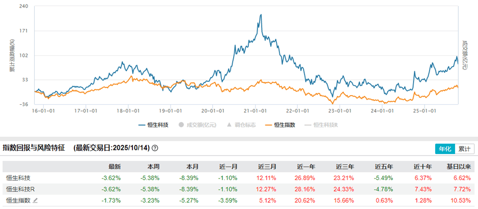 这一趋势也反馈在指数的变化上。包括阿里巴巴、腾讯、中芯外洋等科技龙头公司为要素股的恒生科技指数,自2024年反弹,涨幅大幅着手恒生指数。