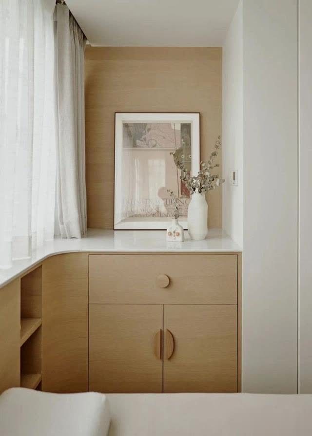 而餐边柜则莫得按照惯例念念路,派遣在餐桌背面,实木柴质的温润,在暖色泽的烘托下,营造造出一个温馨高等的诗意生存。