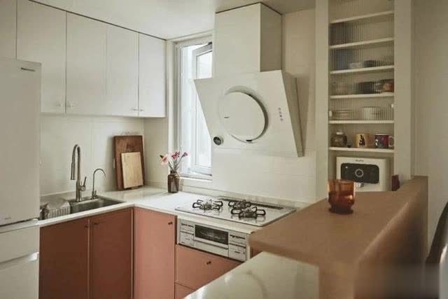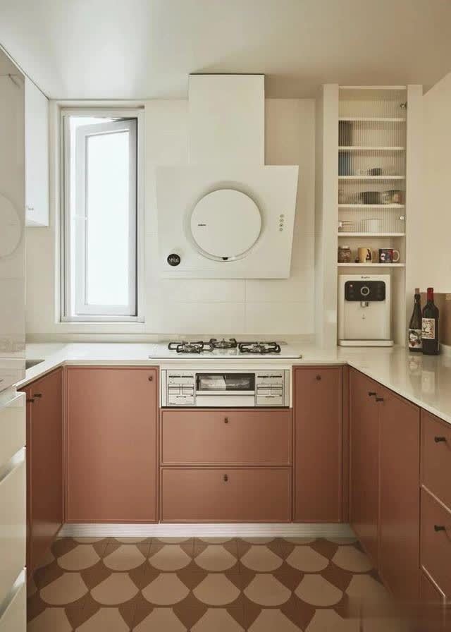 吊柜、落地柜和带磨砂玻璃柜门的层板安静收纳所需,花砖搭配脏脏粉和暖白,给东说念主一种亮堂温馨的视觉体验,唤起了“未艾方兴”的生存气味。