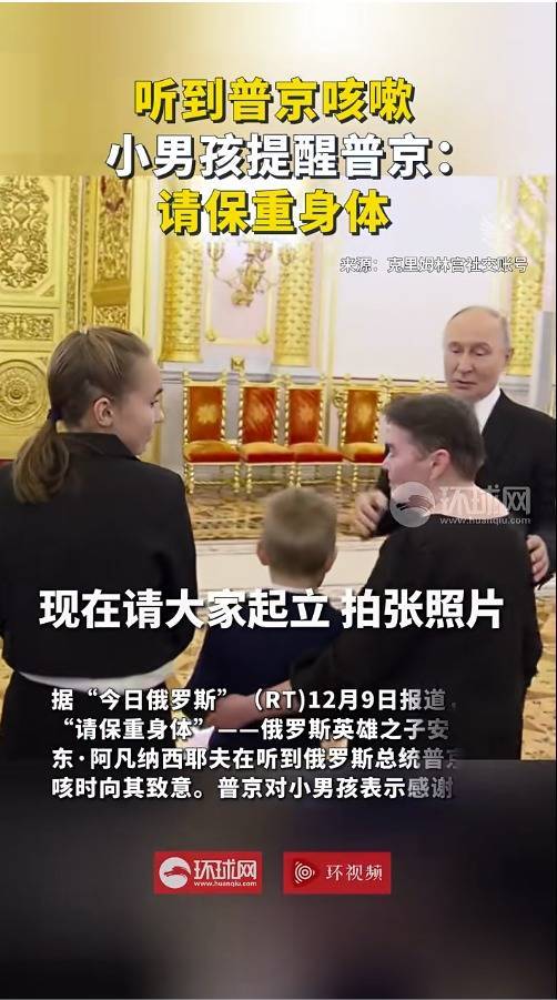另据行家网,据行家网报说念,莫斯科克里姆林宫12月9日举行有功东说念主员授勋典礼。俄罗斯总统普京在与参会东说念主员合影时恐怕咳嗽了一声,此时已故俄罗斯骁雄尼基塔·阿法纳西耶夫的女儿安东向普京总统奉上了诚恳的道喜。
