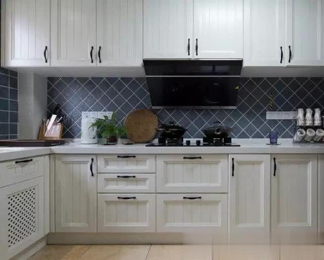 ◆白色橱柜,瓷砖哑光格子砖