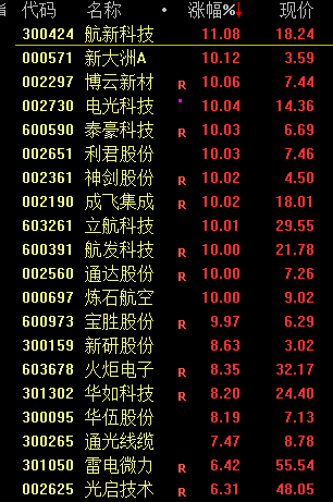 军工板块全天强势,成飞集成(002190)、博云新材(002297)、立航科技(603261)、航发科技(600391)、真金不怕火石航空(000697)等多股涨停。