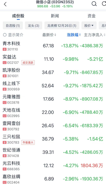 微信小店观点股大幅走低。