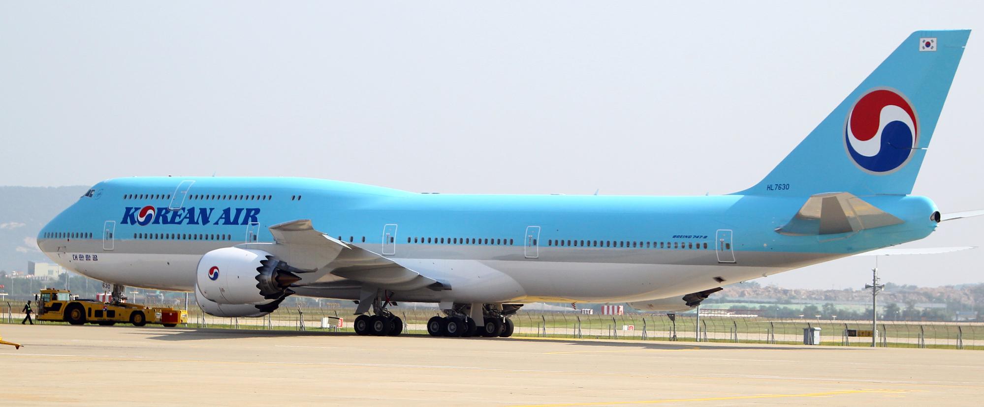 2015年9月1日,大韩航空引进的波音747-8客机停放在韩国仁川海外机场。新华社记者姚琪琳摄