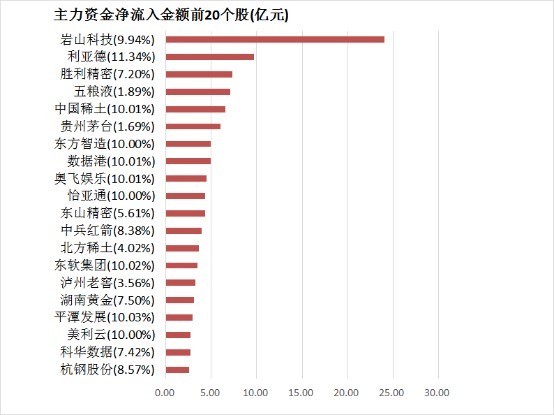 当天沪深两市主力资金开盘净流出114.24亿元,尾盘净流入116.9亿元,两市全禀赋金净流出138.61亿元。